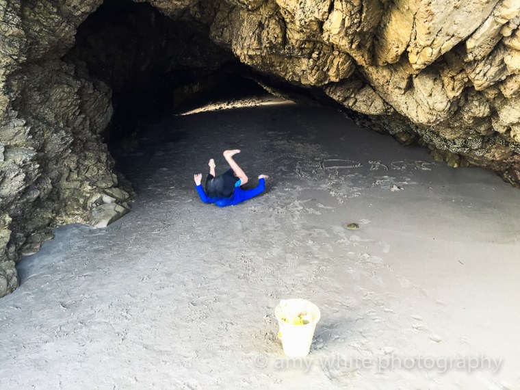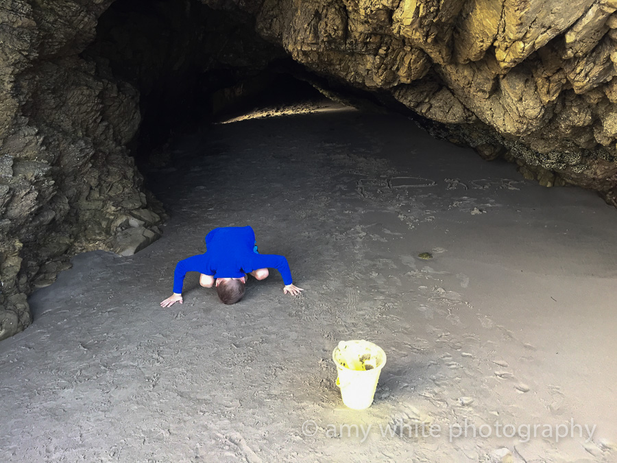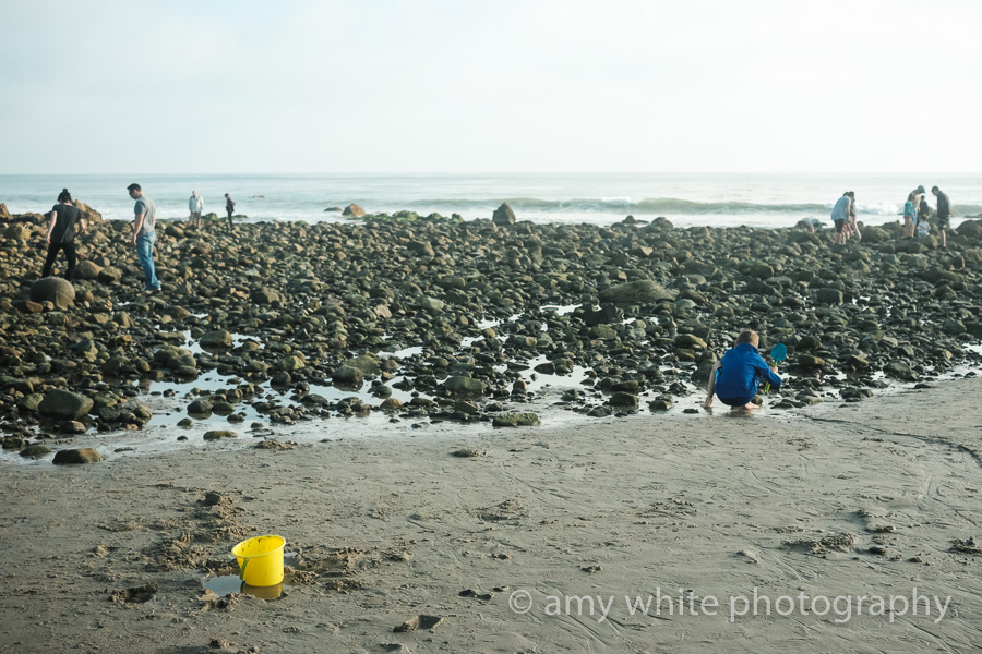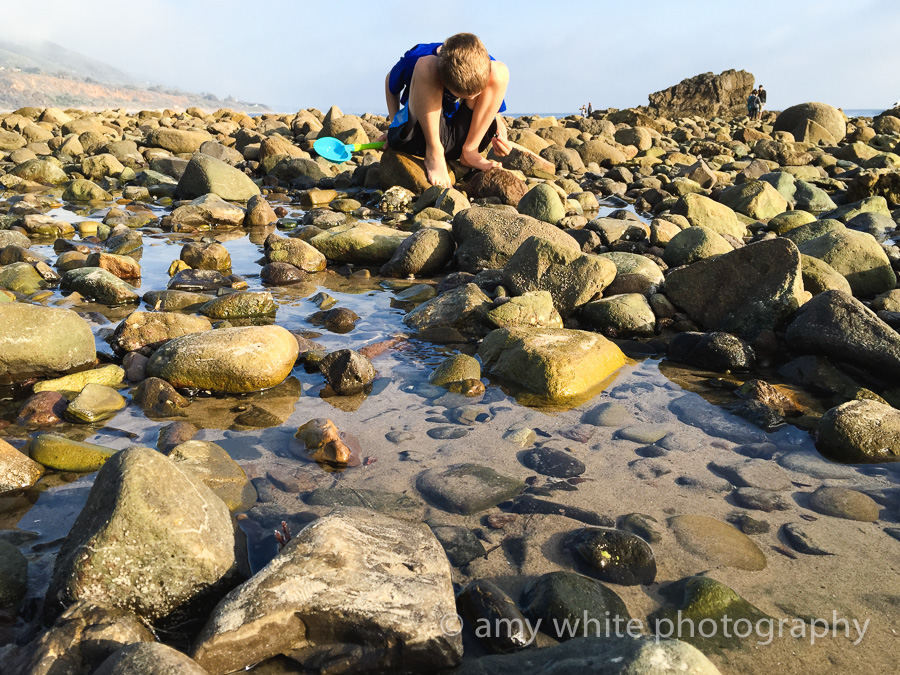 I knew to go at low tide to experience the tide pools. Quinn and his yellow bucket.