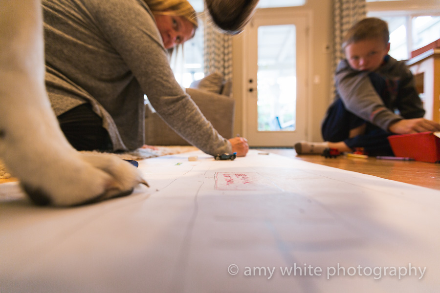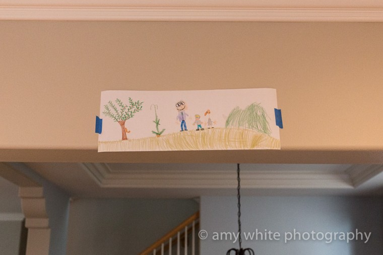 Quinn and I drew a picture of our family and he hung it in our family room. He\’s tall and has a long reach.