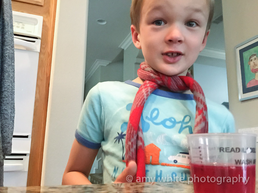 He woke up coughing again on Thursday morning. Not a big fan of the \”cherry\” flavored cough medicine.