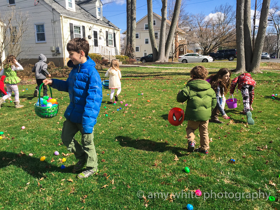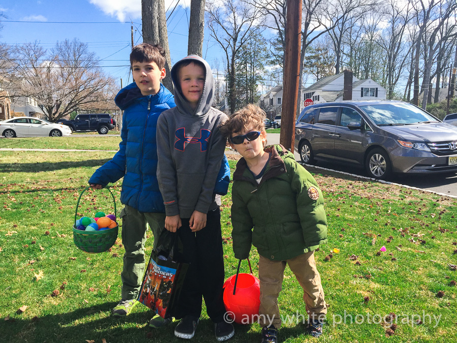 Danielle\’s neighborhood has an easter egg hunt so we joined in on the fun. Getting ready.