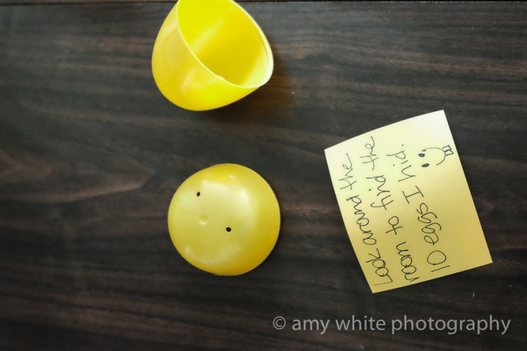 And it\’s on! As you can see, the eggs aren\’t really hidden. After you collect all your eggs you turn them in for a goody bag.