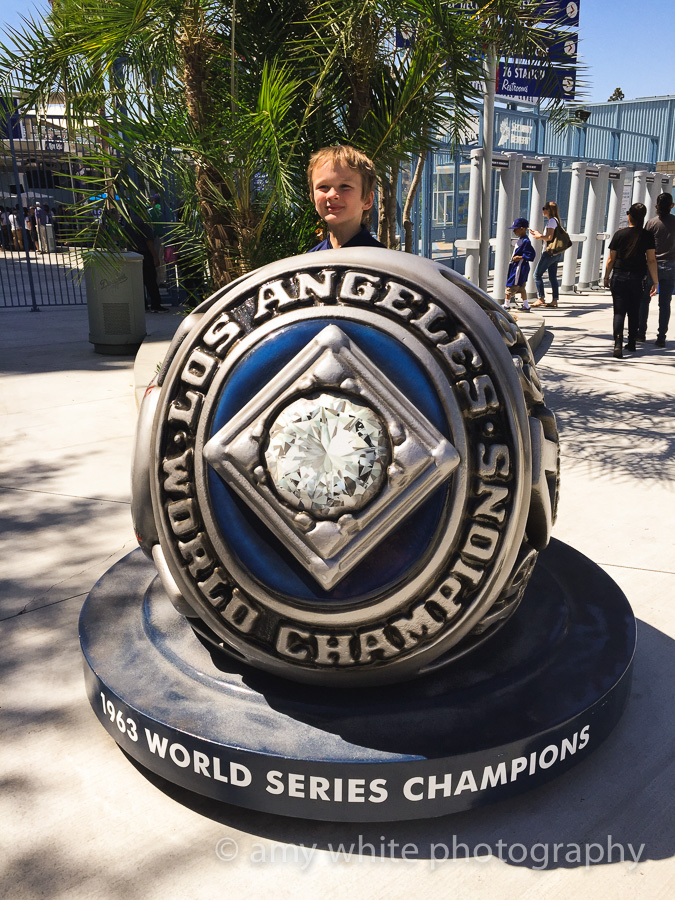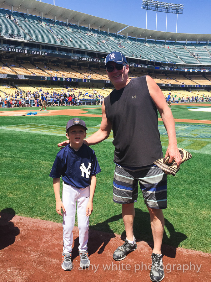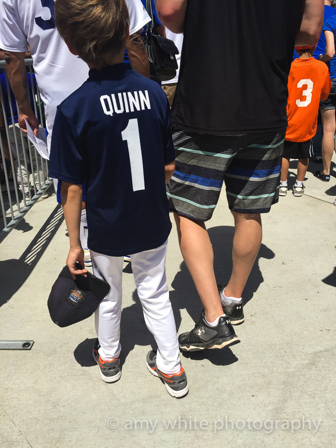 We were rooting for the Dodgers (vs. the Colorado Rockies) and Quinn really enjoyed the clapping and cheering. If you asked him his favorite part of the game he would probably say the ice cream 🙂