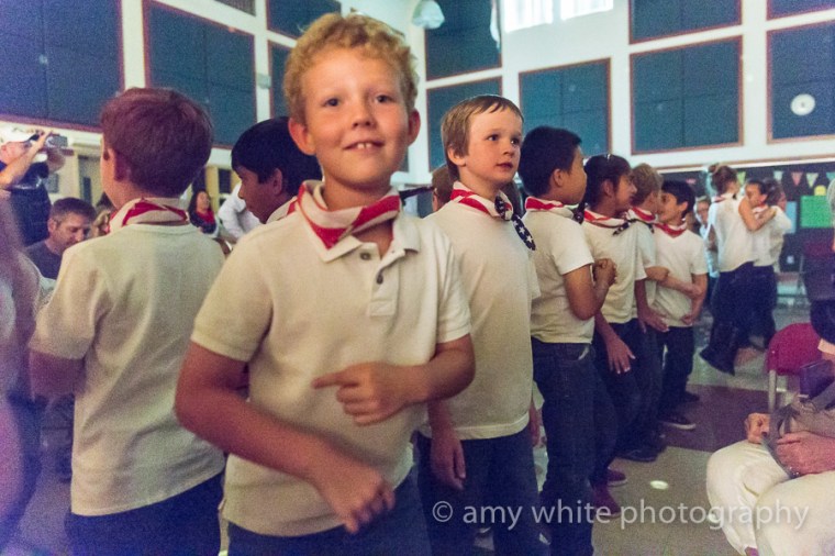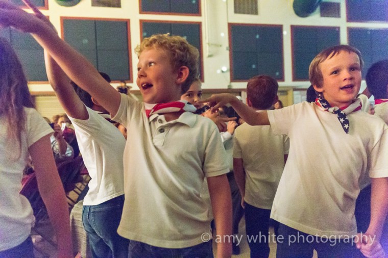 They pretended the show was over and all the kids took their bow. Then \”Living in America\” blasted and the kids thought it was so funny that they pulled one over on the parents and really started grooving. The kids weren\’t supposed to tell their parents about the \”secret song\” but we promised to forget it so that Quinn could sing it at home.