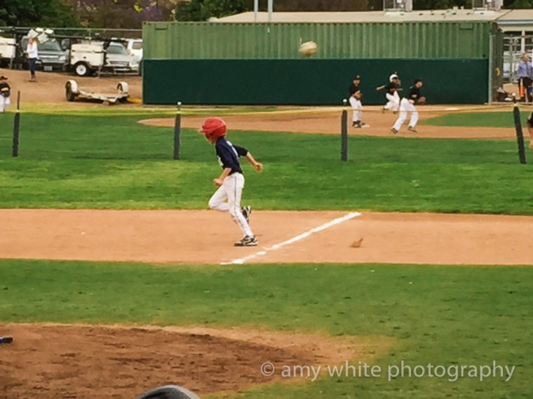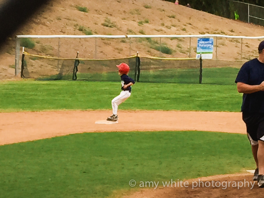 He even got to 2nd base! At that point our team had score the maximum allowed 5 runs that inning so the inning was over.