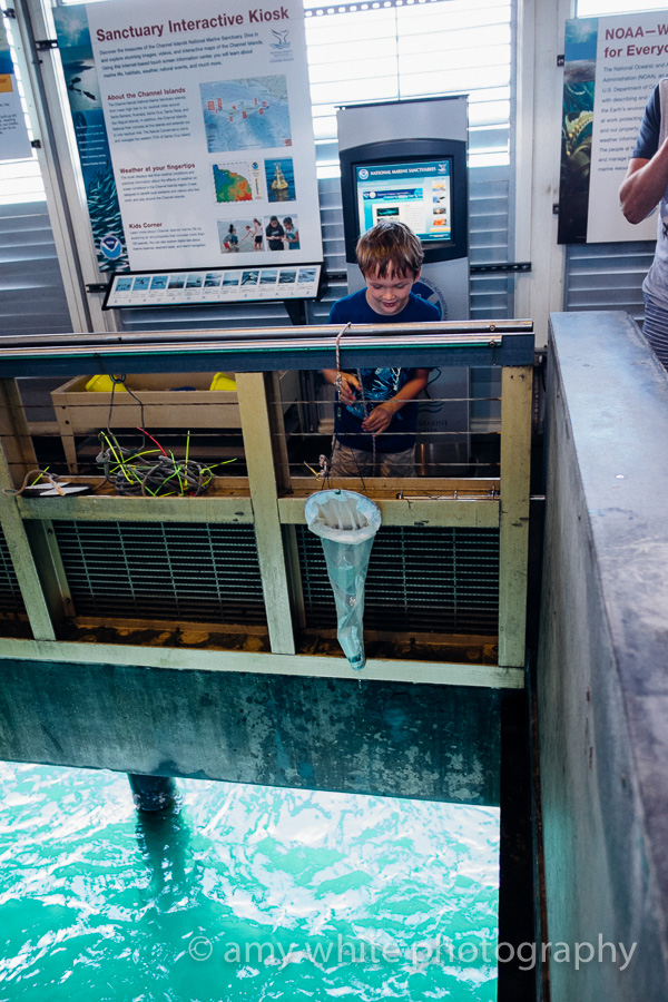 It is a small aquarium but lots of stuff to touch and do. Love this. In the middle of the aquarium they have an opening to the ocean with lots of little baskets on pulleys to pull up to see what you might catch.