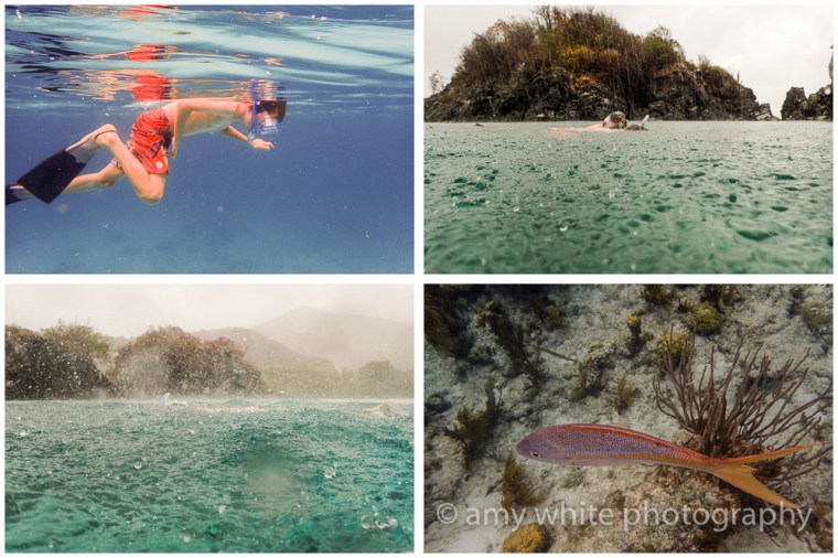 There is an underwater trail at Trunk Bay near the cay so we went out to snorkel around the trail. Then the skies opened up. No worries.