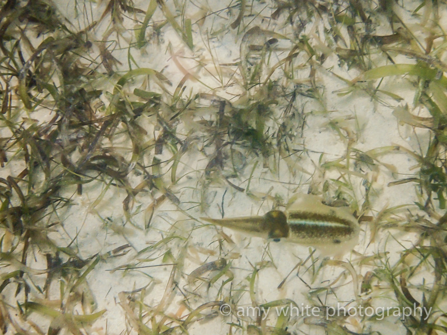 Almost as soon as we got in we saw a school of squid. I snapped this picture before they quickly squirted away.