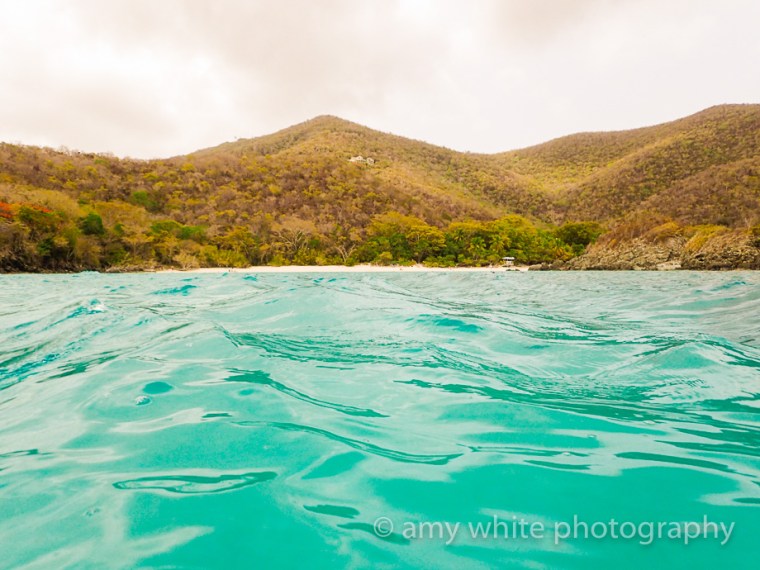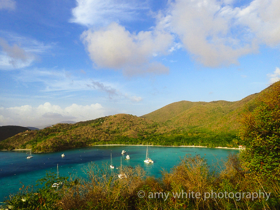 A look at Maho Bay around 5 pm. You might remember that Maho Bay had the eco-tents built on the outcropped hill on the left of this picture. All the tents are down and some billionaire is building on a family compound.