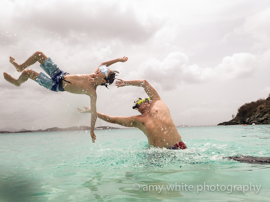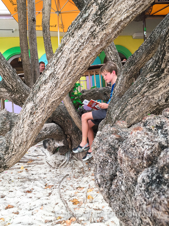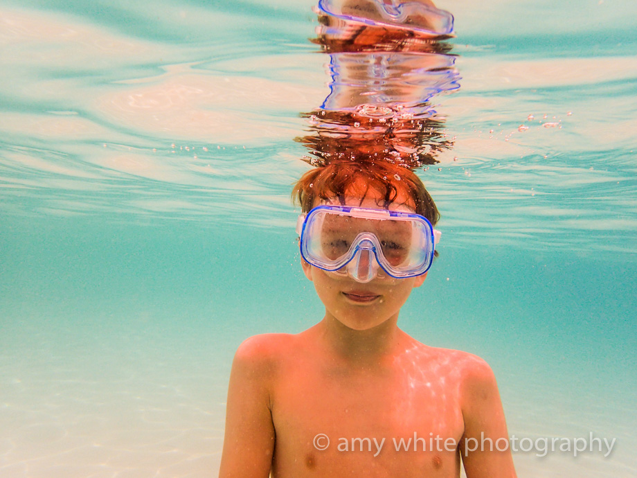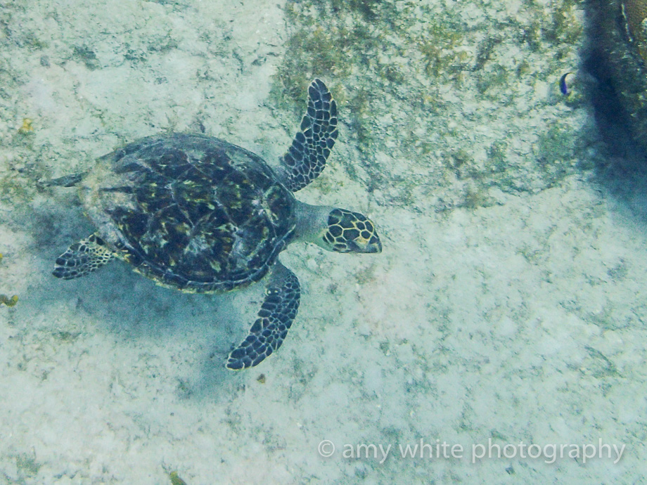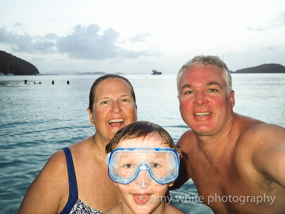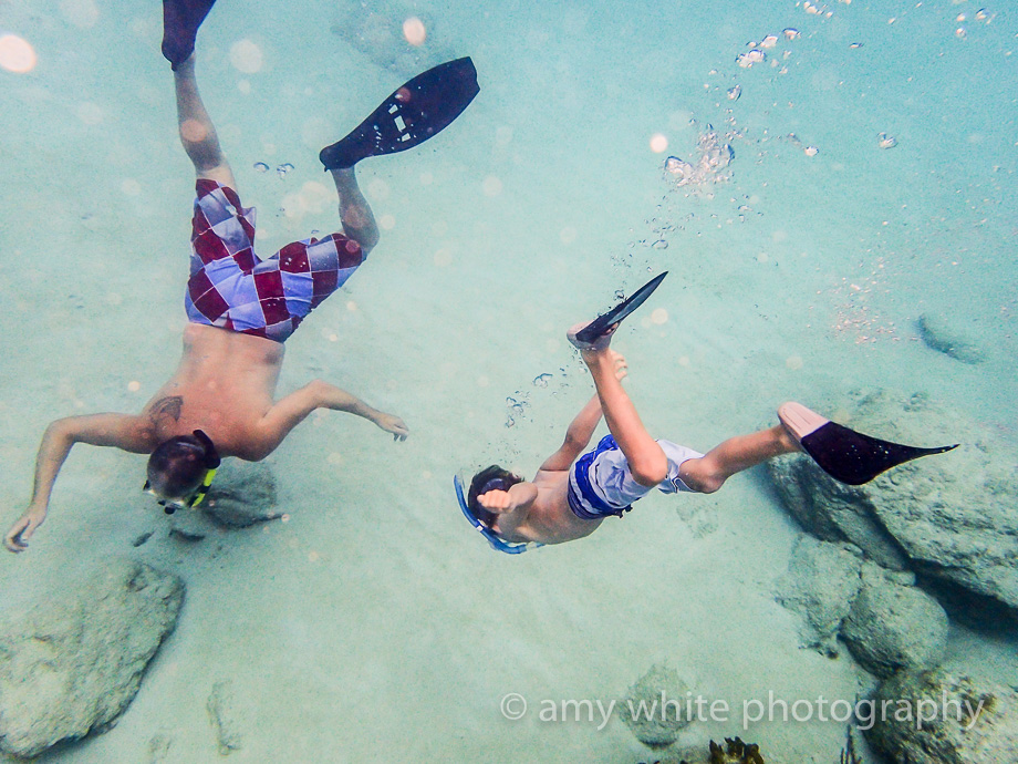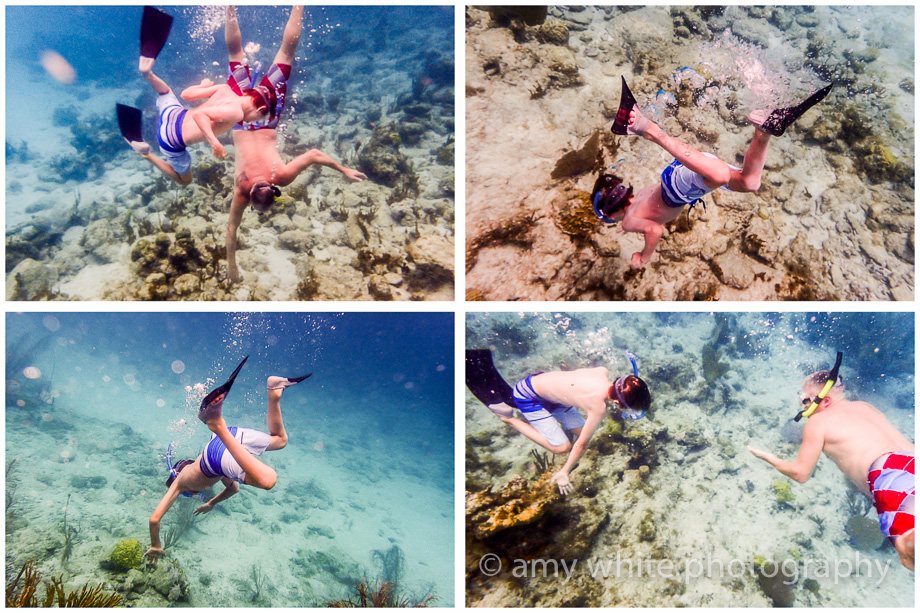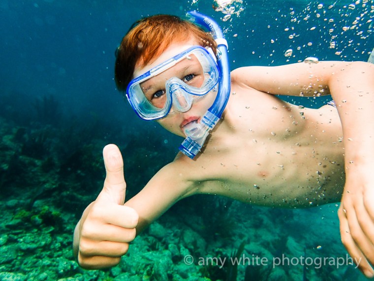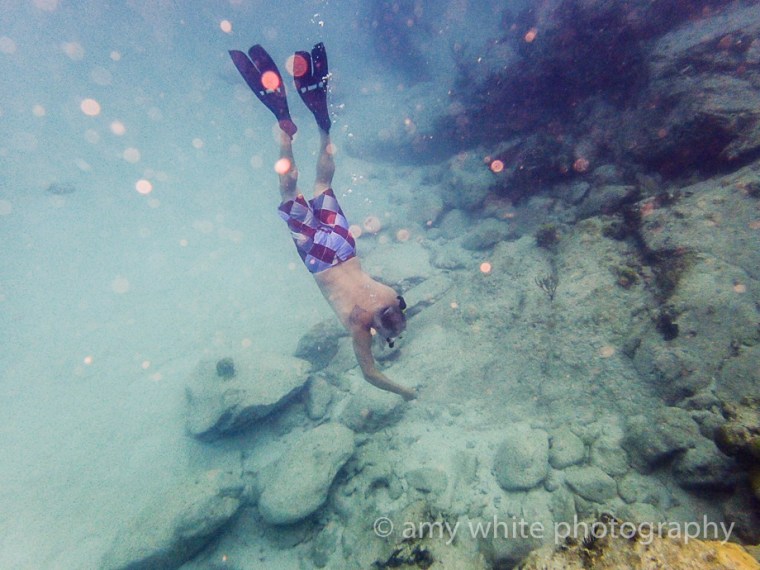 Since Quinn had been doing great with snorkeling we decided to snorkel around the island. Here\’s a look back to shore. This is a long swim but there was no current at all.