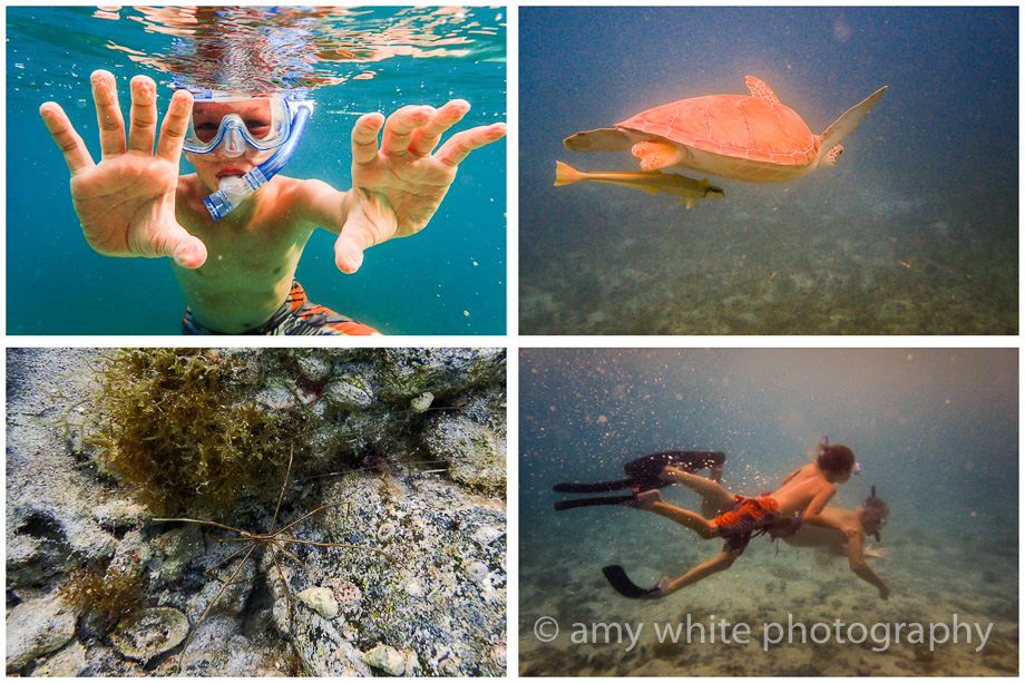 Late afternoon is the perfect time to see rays and turtles feeding and we saw tons of them! We also saw an arrow crab that looks a little bit like an underwater spider. And our boy #snorkellikeaboss