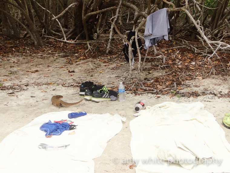 We had heard there was a nurse shark in the area and just as I was about to step in the water for our snorkel he went swimming by. Can you see him?