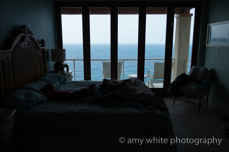 Upstairs it was the same thing. It was a beautiful view but there were no curtains. So at 6 am the room was full of light and Don & I were up.
