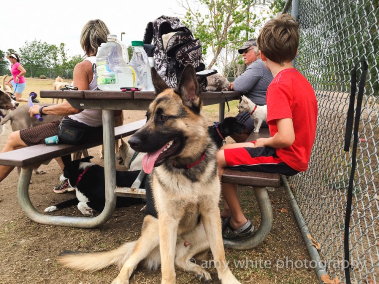 Our little dog whisperer loves going to the park and petting all the dogs. One of his favorites is that tiny white dog Romeo.