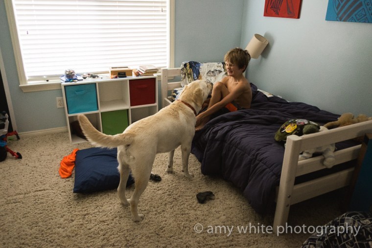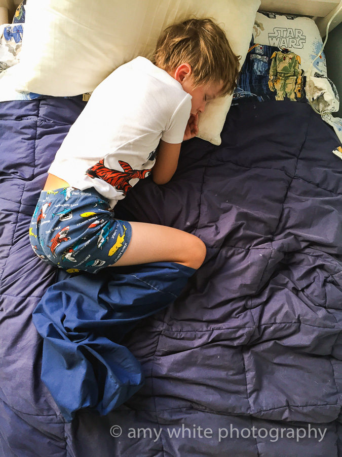 He bet his dad that he could sleep in a pillow case all night. If he did, he got to pick one new app. He won.