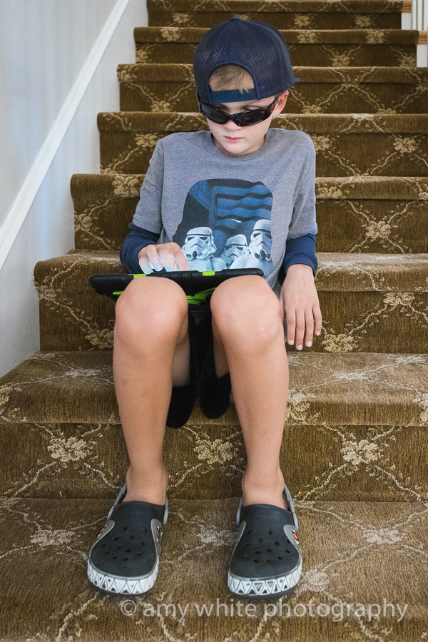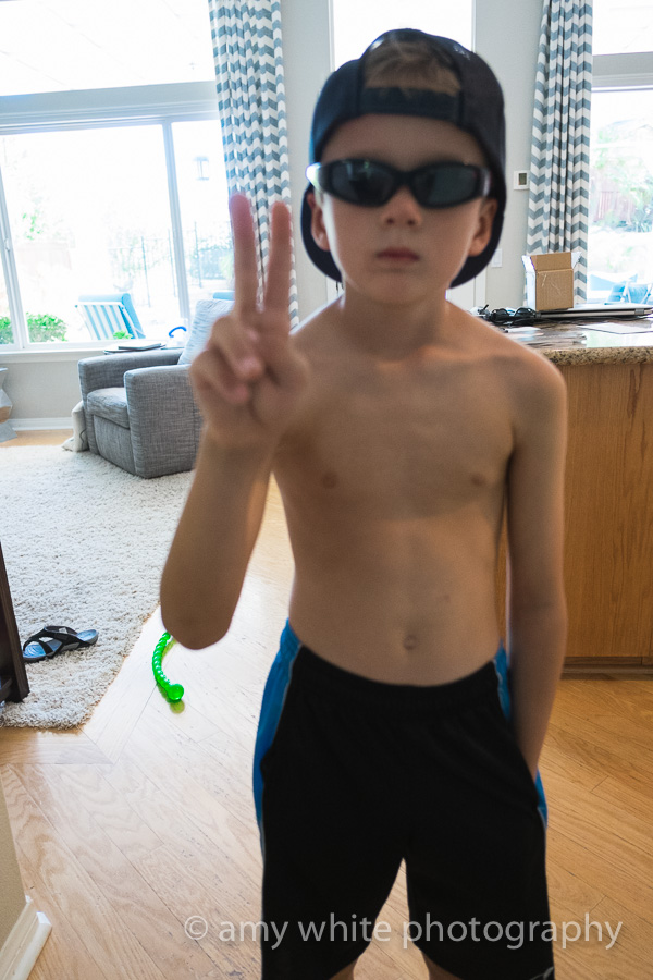 It\’s a shame I didn\’t get this one in focus, but you get the idea. He was going for \”a style\”. Too bad we made him put on a shirt to go out.