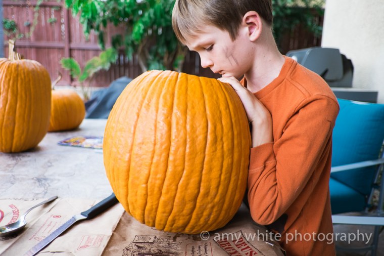 I never got a picture of the front of the pumpkin and Quinn put it in the sun to sit. Well 7 days in 85 degree California sun makes for a rotten, mildewy pumpkin. Good thing we always get a couple of extra pumpkins. I know what we will be doing on Saturday.