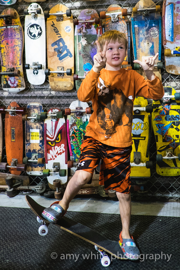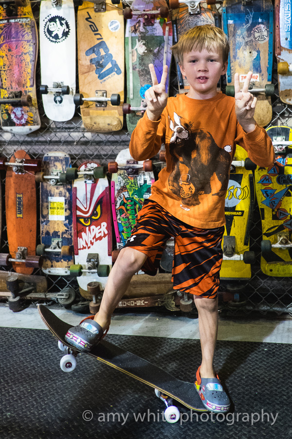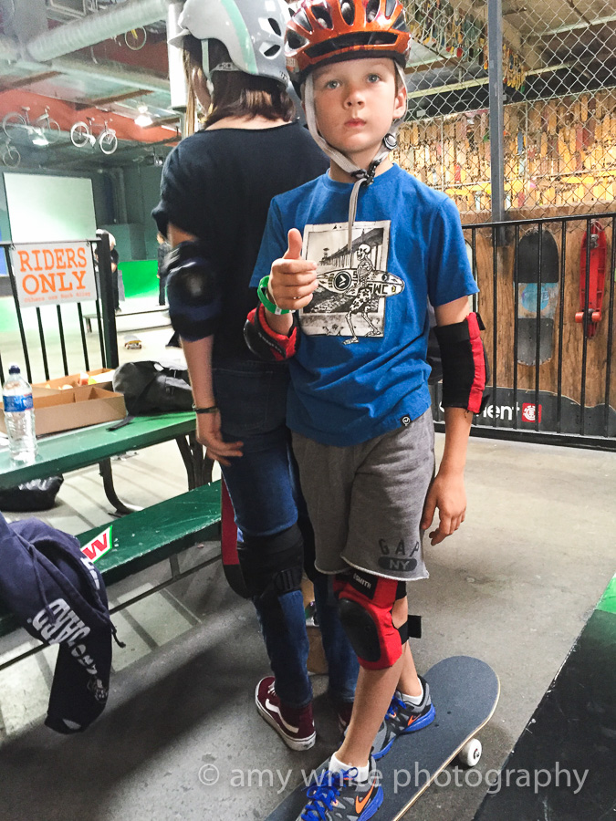 So for his birthday, Mae got Quinn a skateboard and he was pretty psyched about it. We went to a local indoor skatepark to pick out his new board.