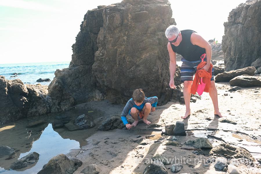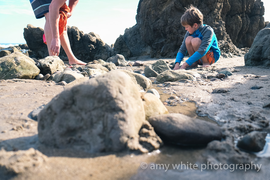 We hit the beach at low tide so there will be lots of tide pools and things to explore. Unfortunately all of the caves that we used to find so fun are gone. Not sure if the low tide was higher or if the tides have brought sand in, but they were gone. Boo!!