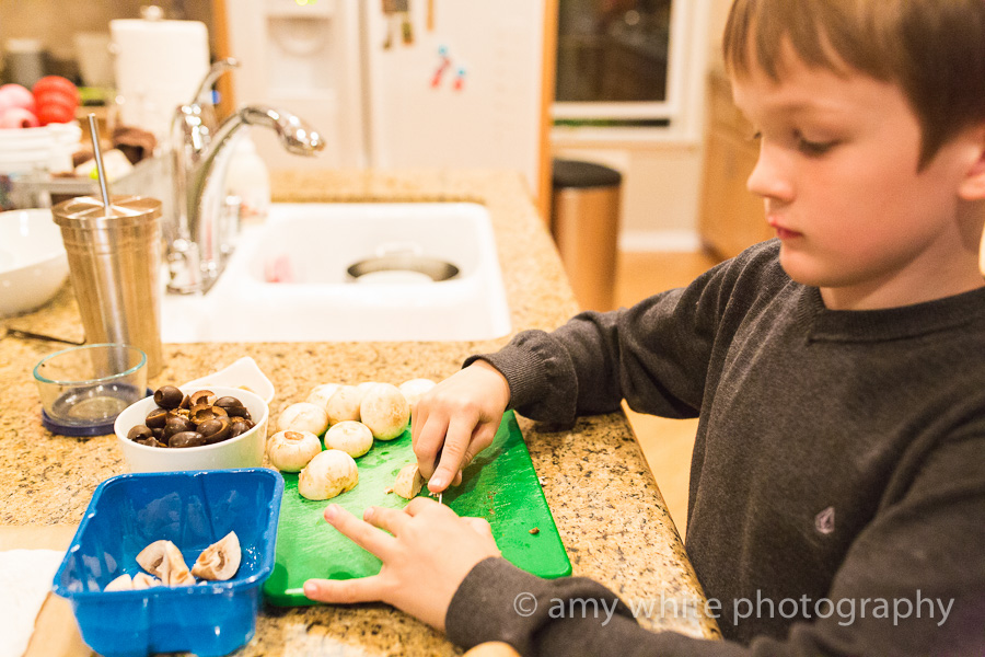 Quinn has become quite a little helper in the kitchen. He claims to be getting pretty good at slicing with the little knife.