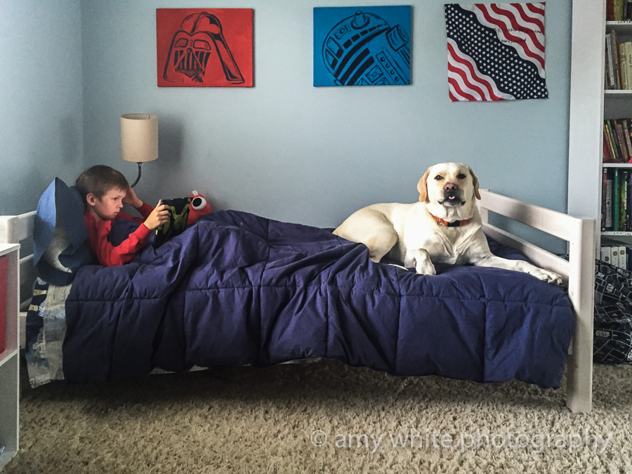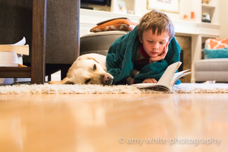 Before school reading with his buddy. This kid reads so many books I have a hard time keeping him supplied.
