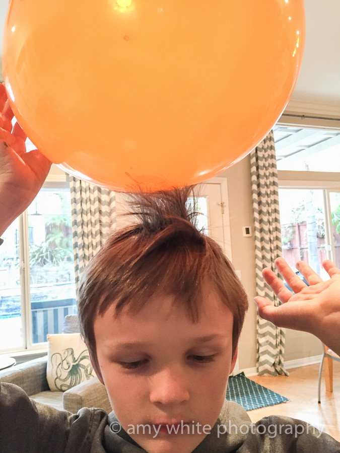 Creating static electricity.