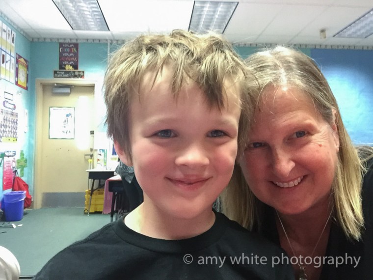 Quinn\’s class had a Valentines Party and I helped with some of the activities. Here I am with my wild-haired boy.