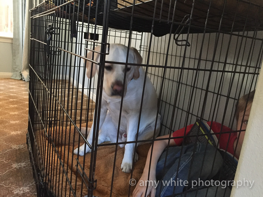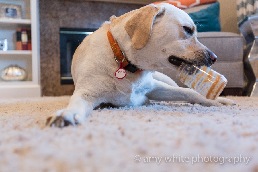 Sonic and an empty jar of peanut butter. One of his favorite treats.