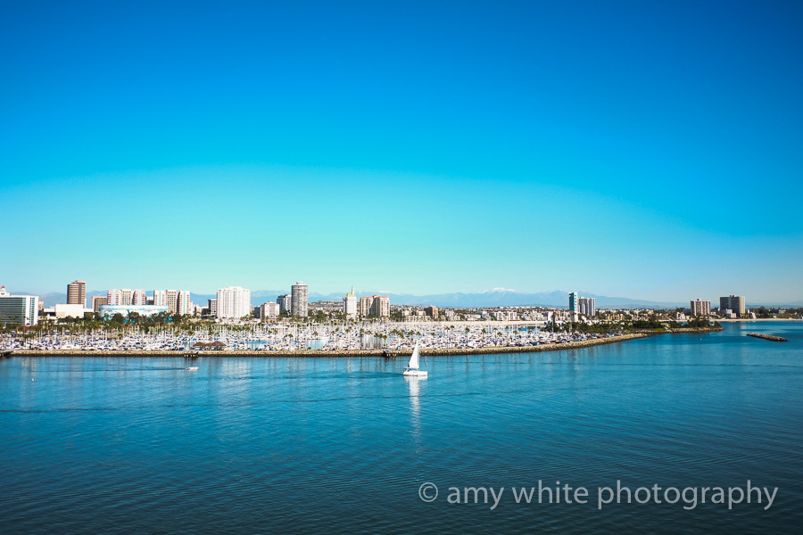Pam and I went down to Long Beach one day to check out a Princess Diana exhibit on the Queen Mary. Here\’s a view from the boat. I love the snow capped mountains in the background.