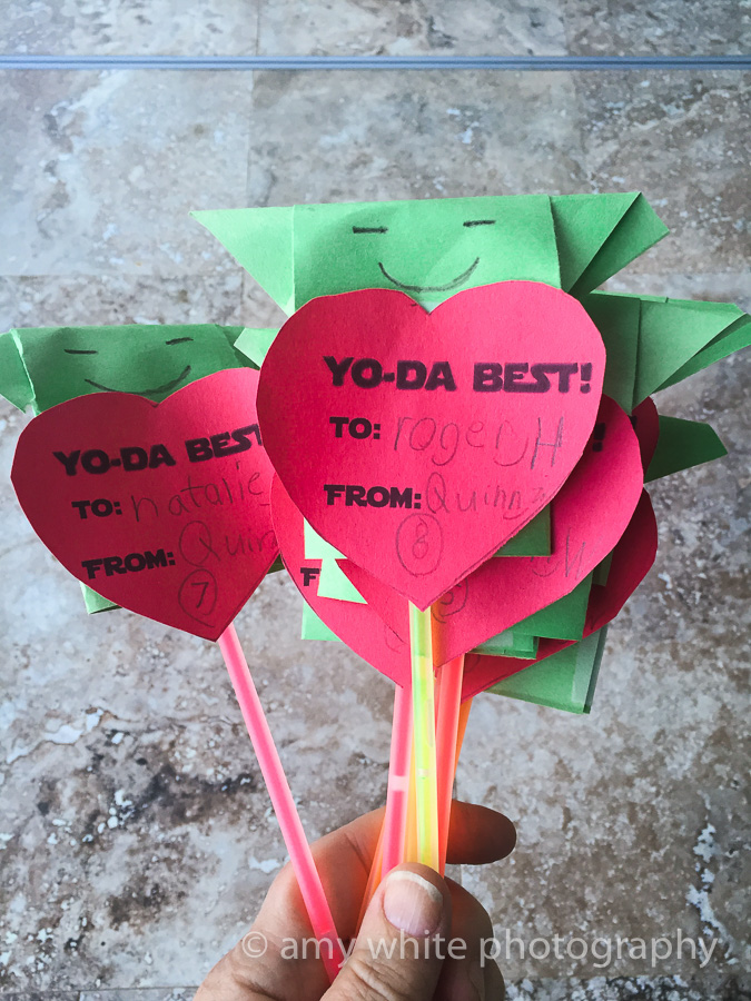 In the meantime we all got to work making Origami Yoda Valentine\’s for Quinn\’s Valentines Party.