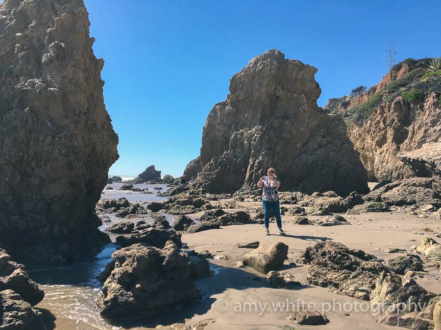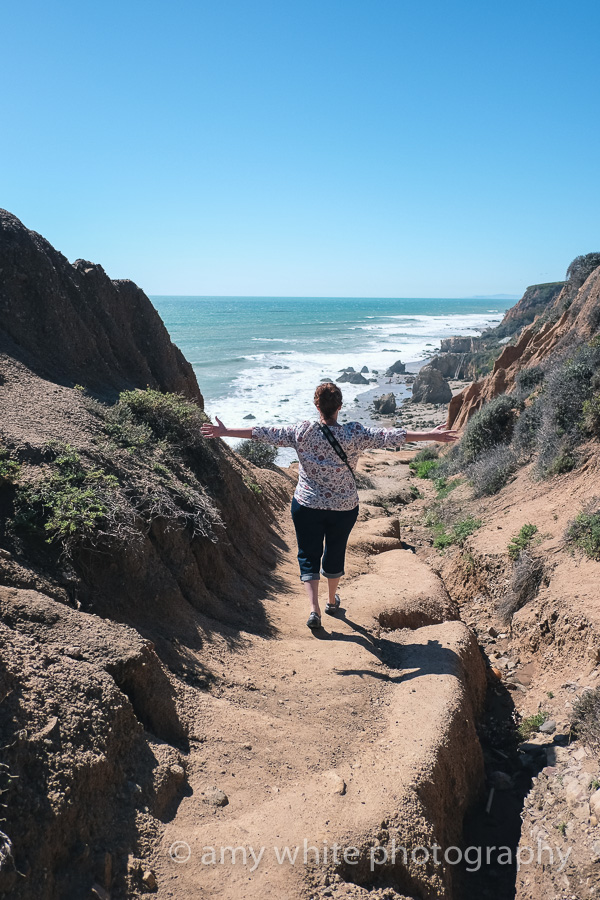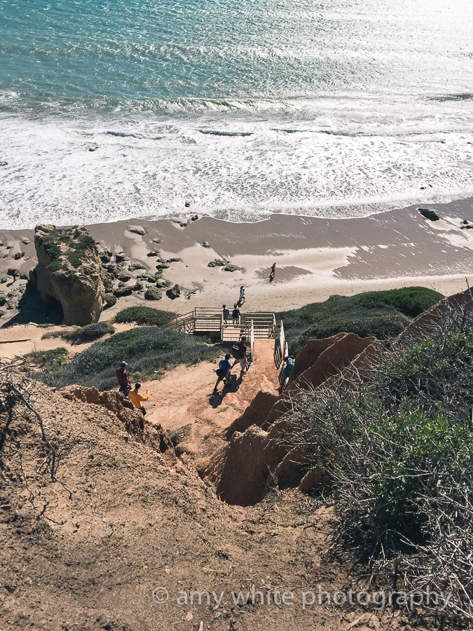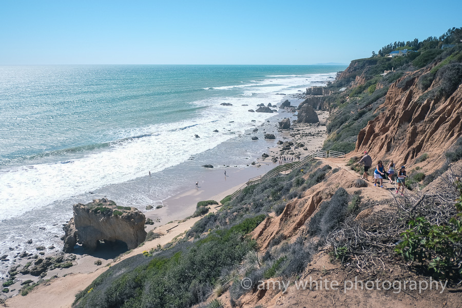 After lunch we went to check out a beach that was new to both of us, El Matador Beach. I had seen pictures and knew it was beautiful but was always concerned about our ability to get down and back up. As you can see, a bit of a hike down.