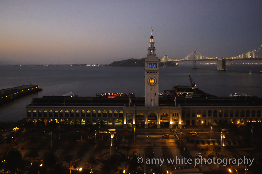And the view from our hotel at night. That\’s the Bay Bridge in the background and it would light up with an LED display every night.