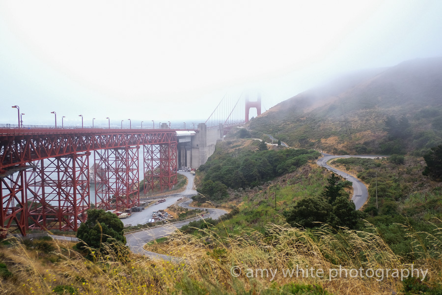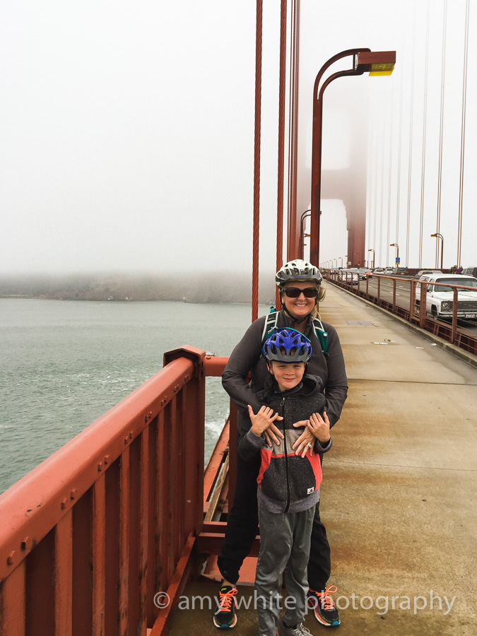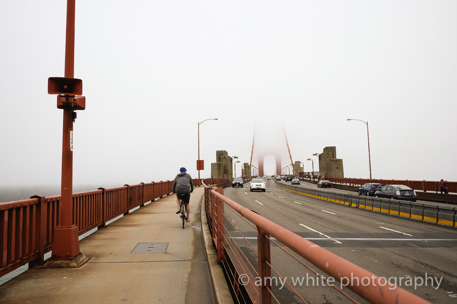 It\’s a nice ride on the way to the bridge along the water. If you look closely you can see the bridge pillars sticking out of the water. It was pretty foggy.