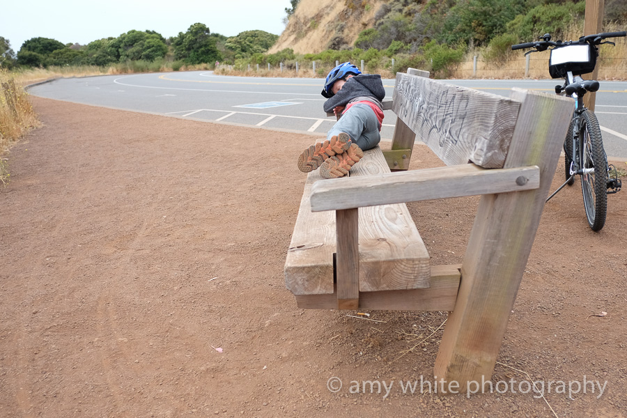 Making a pitstop getting up the big hill. Quinn is still learning how to use his gears but did really great getting up this hill. And I was thanking all my early morning spin classes.