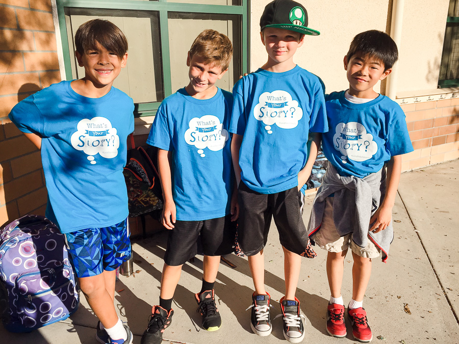 Each year Quinn\’s school has a reading theme along with t-shirts that the kids are encouraged to wear. This year is What\’s Your Story? These boys are all in Quinn\’s class.