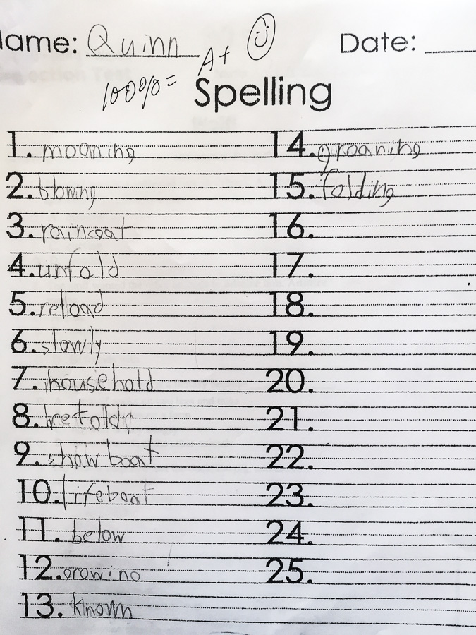 Quinn thinks he should get the 4th grade spelling words as the 3rd grade challenge words are pretty easy for him. I think he might be right.