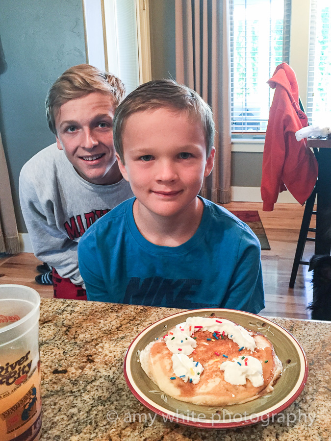 October 9….and he\’s 9!! Special birthday pancakes with sprinkles by Aunt Tamara.