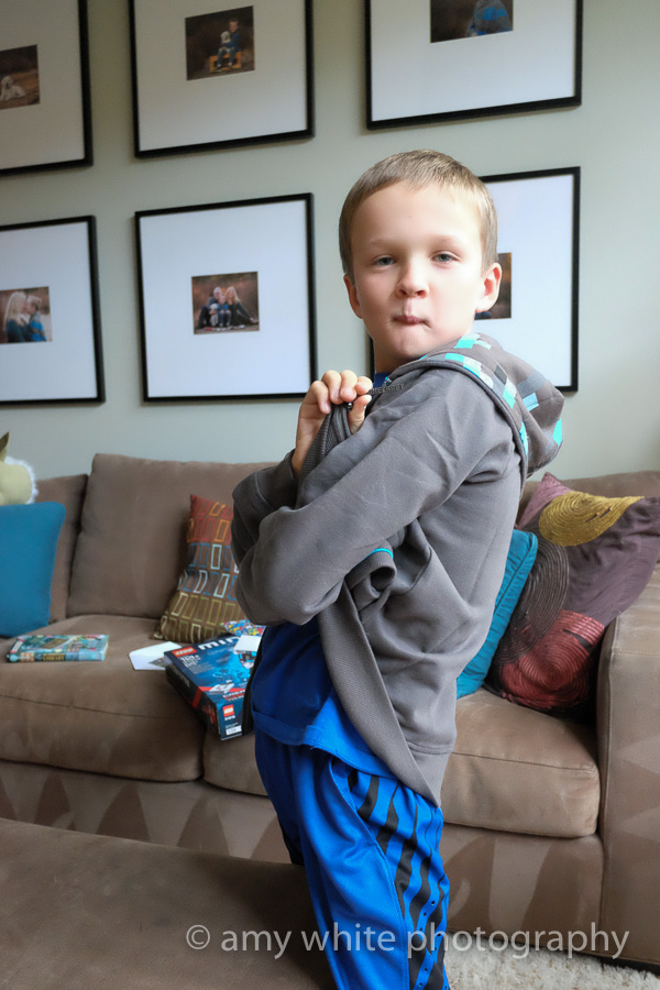 Looking cool in his new Minecraft hoodie!