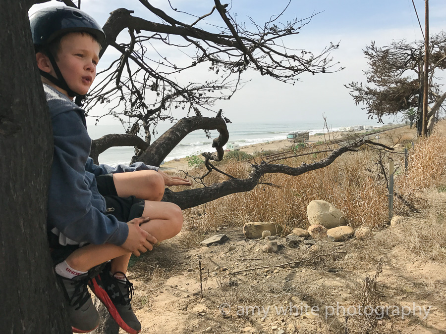 Our other usual stopping place so Quinn can climb the burnt tree and get charcoal all over himself. I happened to take a pretty bad spill on this bike ride, but survived with no broken bones.