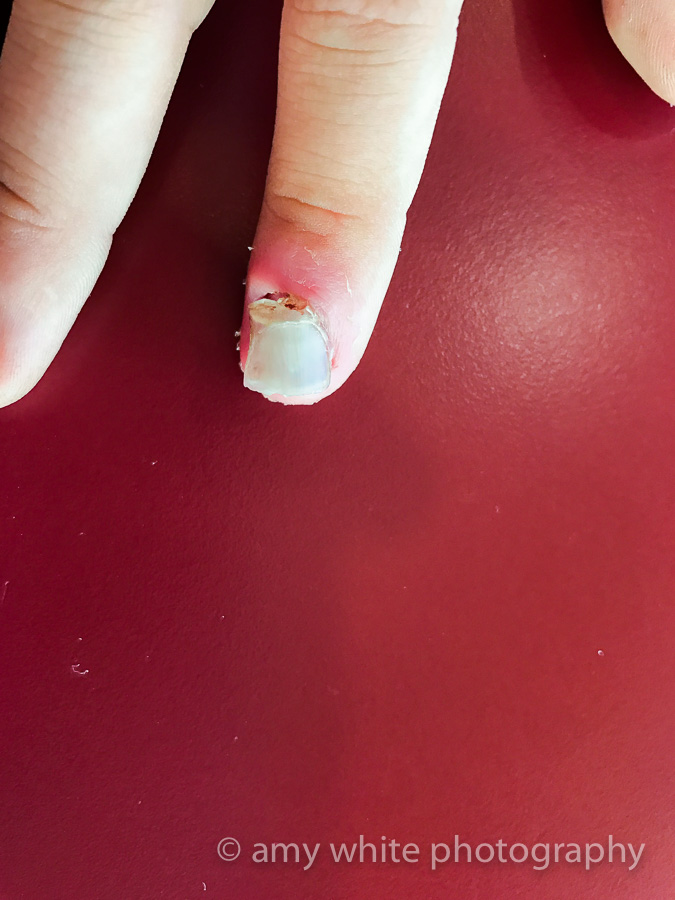 A couple of weeks ago Q slammed his finger in the car door. We were on our way in to see a movie and Quinn was quite the champ, although there was alot of pain and tears. The nail immediately turned purple and I told him it would probably fall off. Here it is a couple of days ago and since then it has fallen off. I think he finds it pretty intriguing.