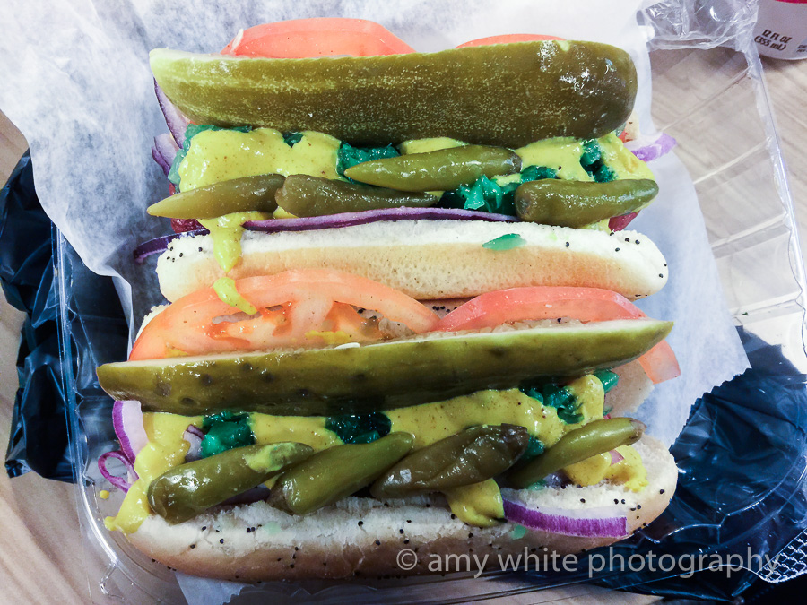 Don couldn\’t leave Chicago without a couple of fully loaded Chicago Dogs!