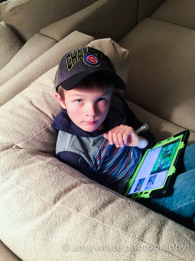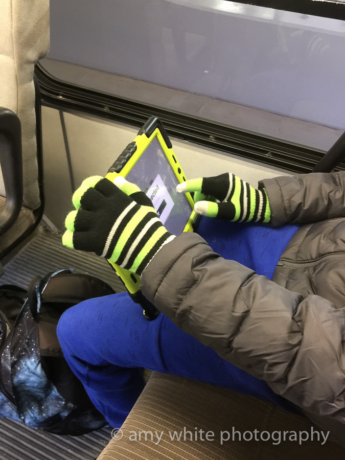 I got Quinn some e-touch gloves to keep his hands warm while using the ipad. He was pretty stoked about using them.