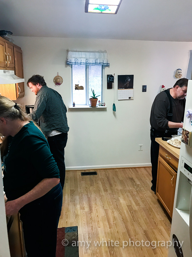 Mom & I spent Thanksgiving with Pam & Family. Here they are working hard on dinner.