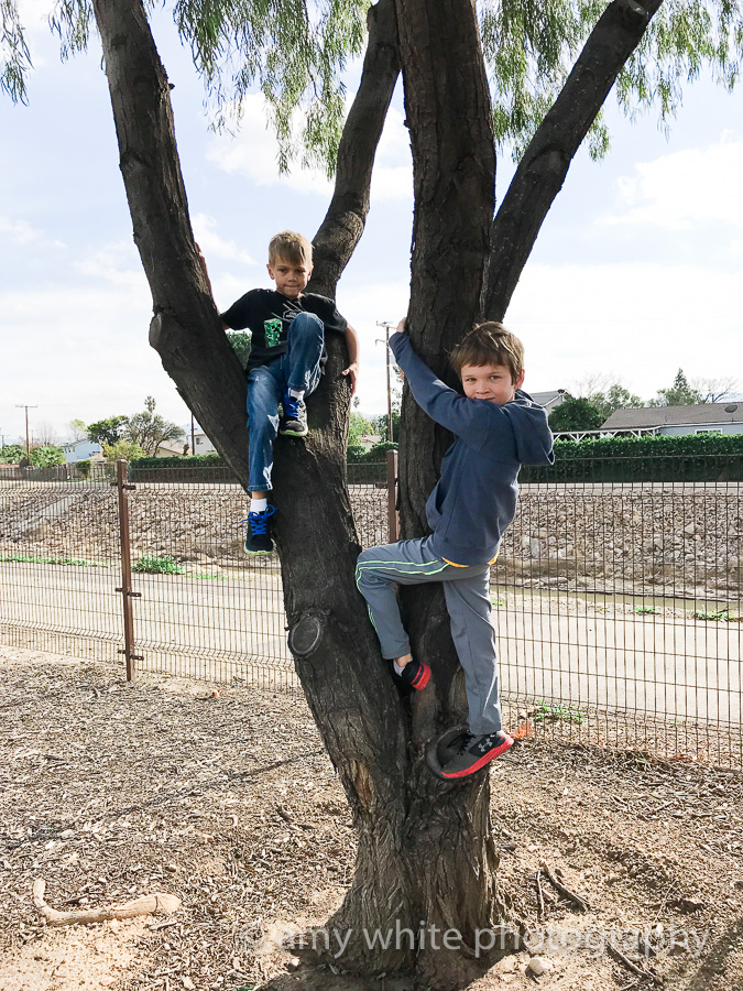 Quinn gave his old bike to his buddy Hayden so we went out for a test drive on Sunday. And then they climbed a tree.