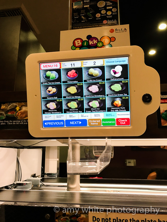 If you order 15 plates you get a special prize that automatically comes down the clear shoot. Quinn was so excited to get a California Roll Sushi Pen!