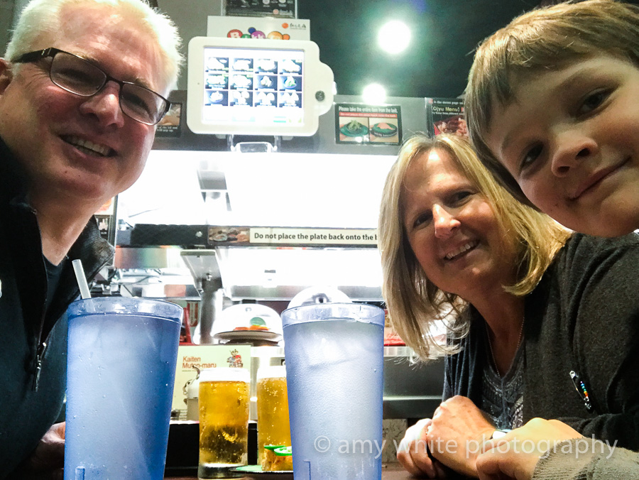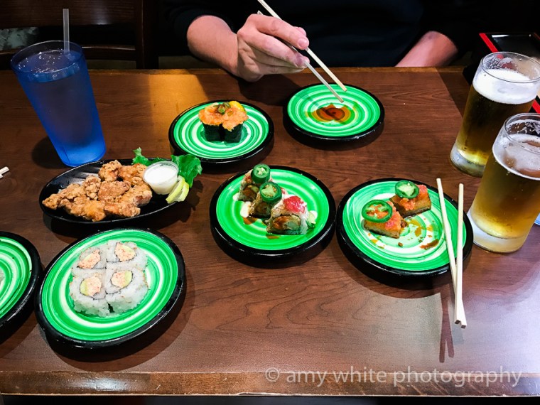 All the plates were pretty small and $2.25/plate so we got to try lots of different things. When we ordered Quinn\’s California Roll we mentioned that it had crab in it. For some reason, it just doesn\’t taste the same now and Quinn\’s not so sure about the crab. Although he did say he would still order it at our favorite local sushi joint.