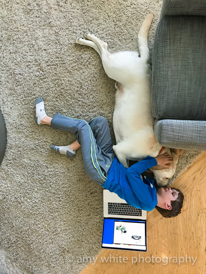 He has the story on the \”narrate\” function so that the story is read to him. Listening to the story with his buddy.