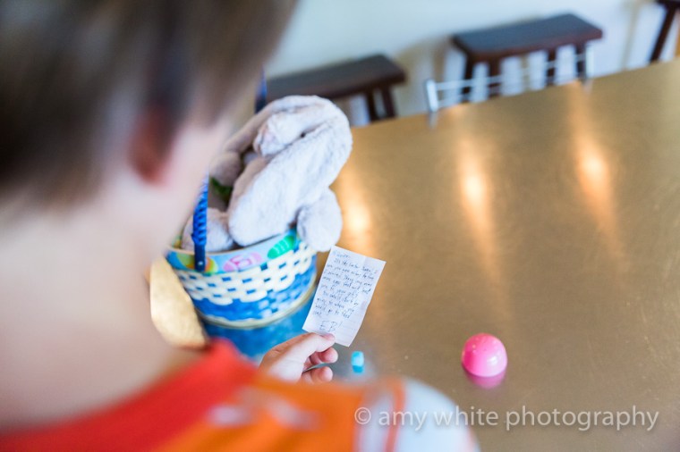 This year the Easter Bunny left a scavenger hunt for Quinn.