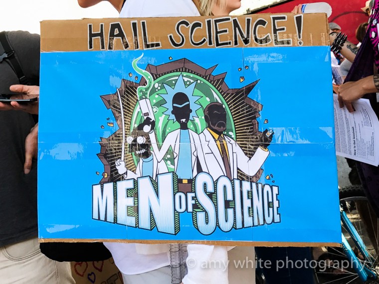Quinn\’s favorite sign of the day. All these Men of Science are from cartoons.