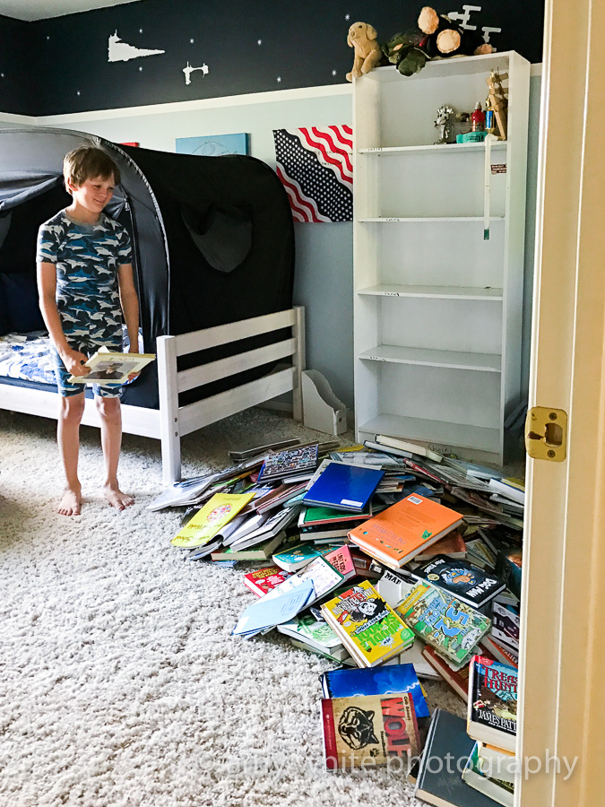 Quinn really wanted a new game system and asked for chores to do to earn some money. We negotiated this chore at $11 to sort through all his books and organize them. It took him most of the week to complete but he did it.