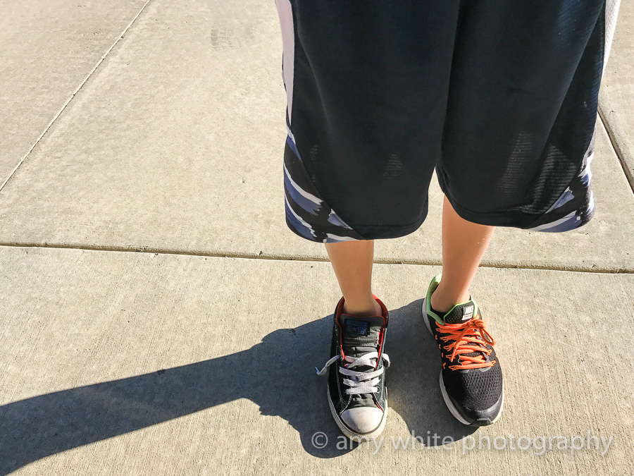 As we approached the school this morning Quinn realized that he had on mismatched shoes. This kid 🙂